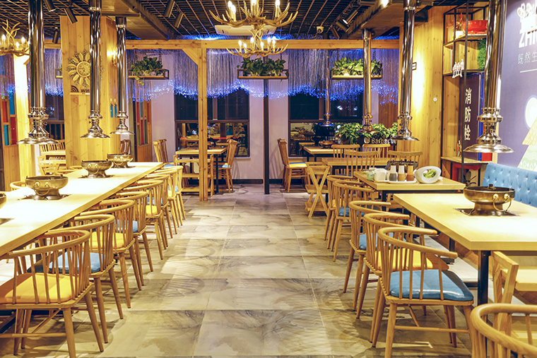 4、餐廳照明:一家有出色的燈光設(shè)計(jì)的餐廳可以給顧客帶來視覺與味覺的雙重享受,讓人身心愉悅。好的燈光設(shè)計(jì),可以增加食物質(zhì)感,還原食材的真實(shí)顏色從而激發(fā)顧客的食欲。炙成一派采用了3500K色溫照明,在燈光照耀下,展現(xiàn)牛羊肉的新鮮肉質(zhì)感,同時偏暖的光源也營造出溫馨、舒適的就餐環(huán)境。在燈具的選擇上,我們使用了與空間裝飾風(fēng)格想匹配的工業(yè)風(fēng)蠟燭吊燈,而在靠窗一側(cè),則使用了垂釣而下的絲帶燈,顧客在用餐之余仿佛將自己置于星星閃爍的蒼穹星空之下,非常有情趣。
