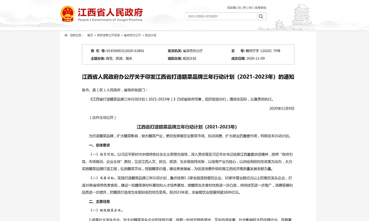 《江西省打造贛菜品牌三年行動(dòng)計(jì)劃(2021~2023年)》(以下簡(jiǎn)稱《行動(dòng)計(jì)劃》)共提出包括做優(yōu)贛菜企業(yè)、提升贛菜品牌等主要任務(wù)。