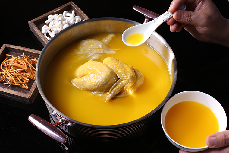 “喝著啤酒泡枸杞”“熬最晚的夜,敷最貴的面膜”……這些看似調侃的語氣,實則透露著時下全民對健康生活方式的追求。所以,廣式火鍋要做到既滿足火鍋情結,還帶有養(yǎng)生屬性,在這方面豬肚雞特點非常契合。傳統(tǒng)的廣東豬肚雞都要輔以藥材入湯,一鍋濃郁的白湯營養(yǎng)滋補,這是養(yǎng)生屬性;同時,豬肚雞又是廣式火鍋中唯一能加“辣”的火鍋,這里的“辣”指的是胡椒,喝湯吃肉后還用廣州特色食材作涮菜,最后主食再來一份燒臘,可謂火鍋的完美配置。