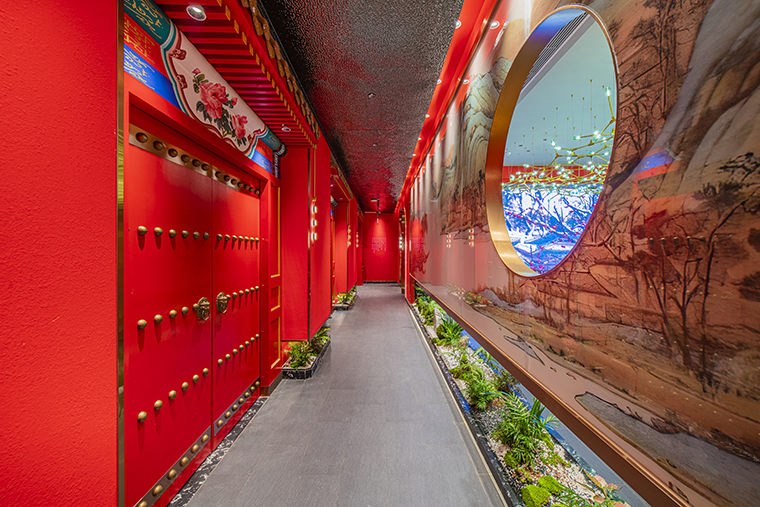 空間墻面中,我們使用了大量的軟膜燈箱,將北京故宮的高精度畫(huà)面進(jìn)行展示,讓顧客透過(guò)一幅幅畫(huà)面仿佛置身故宮中,進(jìn)一步強(qiáng)化了對(duì)京味張的品牌認(rèn)知。