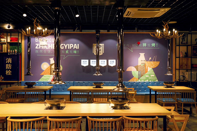 品深餐飲設計認為:炙成一派作為??谑准椰F拌烤肉店,具有明顯的市場先發優勢,在空間中應通過氛圍體驗,品牌訴求,在消費者心目中植入現拌烤肉就是炙成一派,將品牌等同于品類。通過空間的視覺體驗,燈光感受,食物的味道,家具軟裝的觸感體驗,讓消費者能放松心情,享受美食,有情懷,有情調,有趣味。消費者置身其中,心靈宣泄,釋放壓力,最終產生品牌的粘性和較高的復購率。