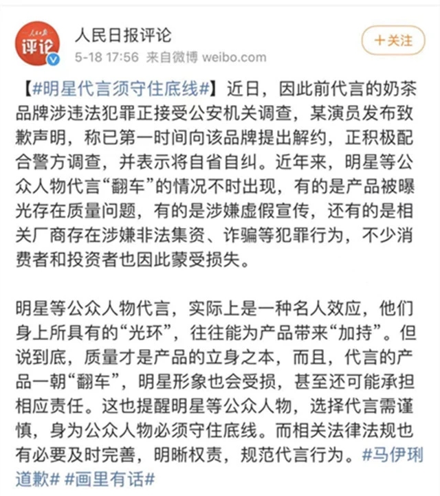 人民日?qǐng)?bào)評(píng)論以“明星代言須守住底線”表態(tài)??煺屑用?ldquo;灰色產(chǎn)業(yè)”變成非法詐騙進(jìn)入大眾視野。明星代言產(chǎn)品翻車不用負(fù)連帶責(zé)任,同時(shí)又可以迅速投身到下一輪的品牌割韭菜中。