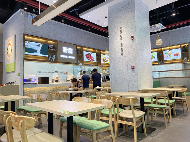 匯鈺二食堂在空間大面積使用水磨石飾面板,整體明亮清新,自然,富有文藝氣息,完美實(shí)現(xiàn)了消費(fèi)者對更高品質(zhì)、更純味道、更好生活的要求。