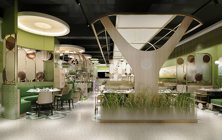 大浪商業中心的后浪新天地作為深圳市“夜間經濟示范點”,旨在向消費者提供更具品質感與趣味性的消費體驗,打造出地方特色,構建成龍華夜生活集聚區,為消費者帶來文旅性街區商業消費新體驗。后浪新天地年輕人眾多,對美食除了美味之外還要有美觀,能滿足打卡,拍攝分享的需要。我們的餐區面積約265平方米,在餐位形式分布方面,我們以4人位為主,2人位10張臺,6人位圓臺5張,10人包間2個。餐位的設置以滿足年輕人小聚為主,兼顧家庭小聚。在有限的面積內實現了用餐舒適性及空間利用最大化的完美統一。