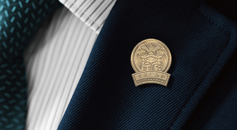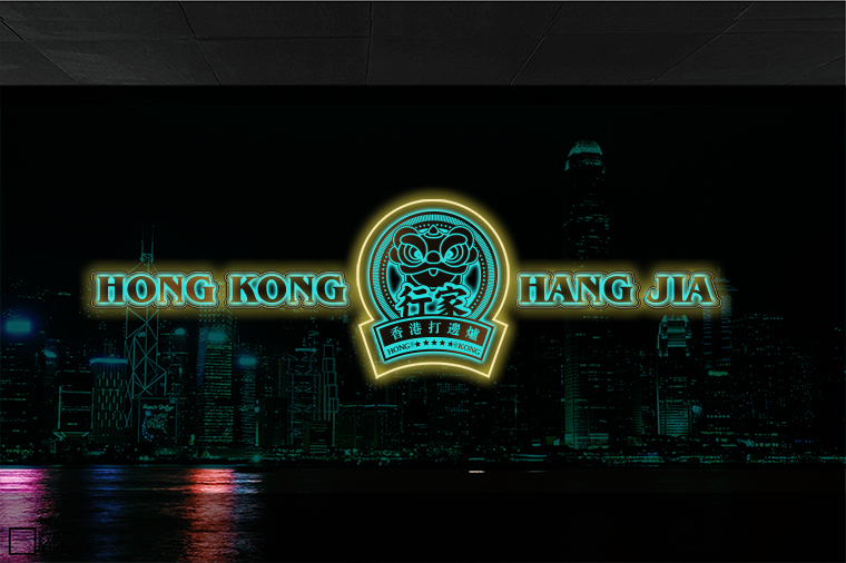 品牌記憶點(diǎn):南派醒獅+香港海洋藍(lán)+玫瑰金不銹鋼+品牌元素在空間中應(yīng)用