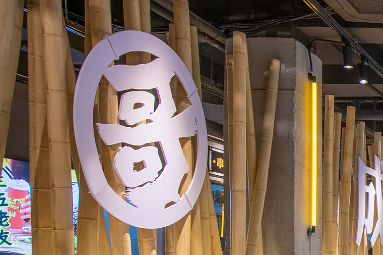 在空間中,我們用鹵串哥品牌強(qiáng)關(guān)聯(lián)的具體一個竹元素串聯(lián)整個裝飾,形成品牌專屬識別記憶,并與串串香的竹簽子,竹椅相呼應(yīng),既有品類特征,又是品牌文化的經(jīng)典傳達(dá)。